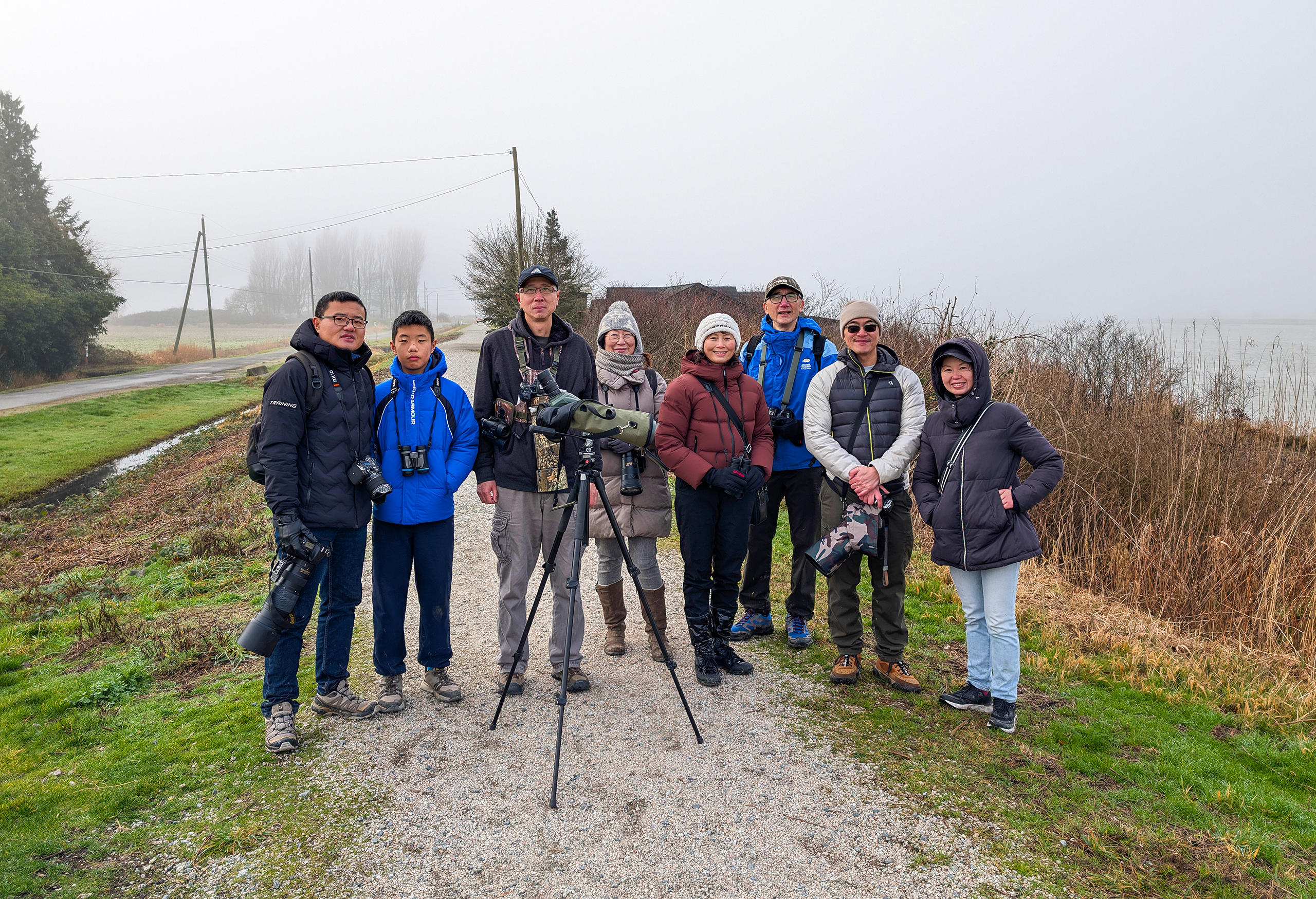9:00 am – 12:00 pm 今日大雾,增加了观鸟难度,但大家的观鸟热情不减。最少有4-5只短耳鸮。 布蘭絲維克岬(Brunswick Point)位處菲沙河(Fraser...