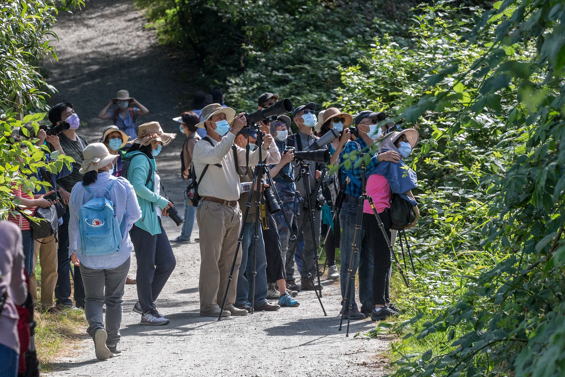 今天有将近30人参加活动,虽然人多,但大家都戴了口罩, 并保持距离, 观鸟不忘防疫,为大家点赞
