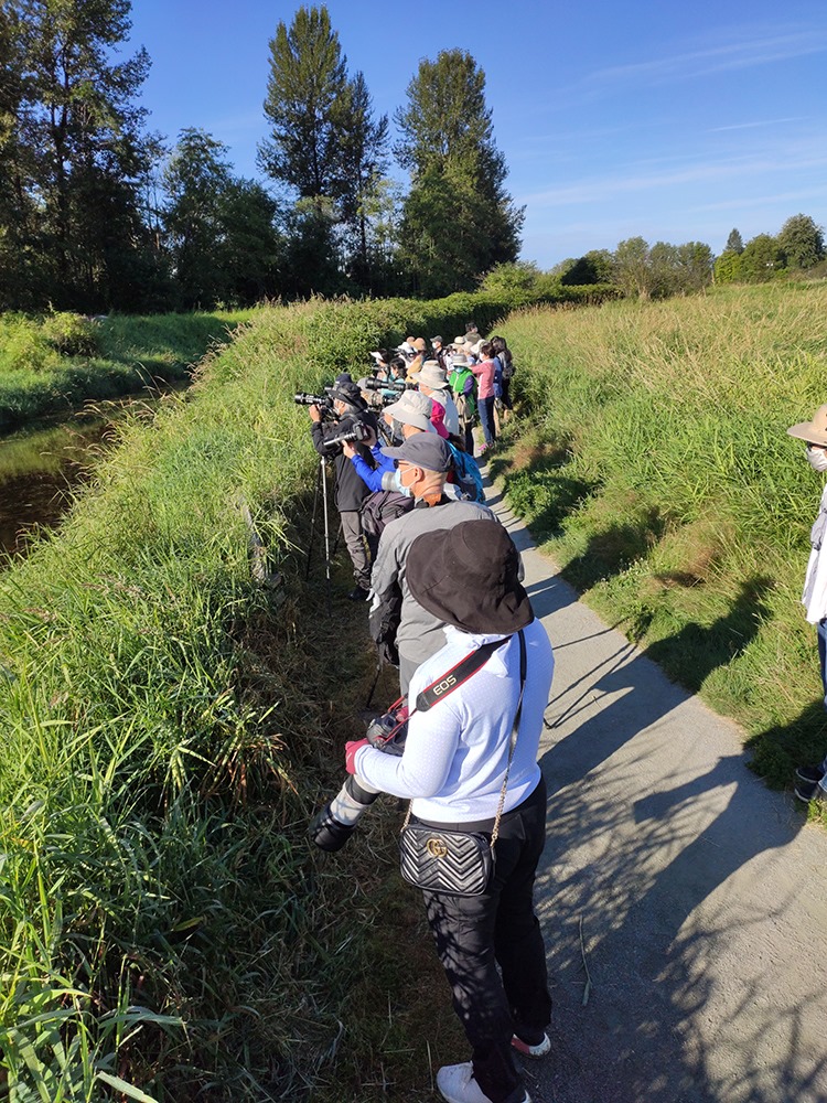 我們很容易在此看見大藍鷺(Great Blue Heron)、加拿大雁(Canada Geese)、白頭海鵰(Bald Eagle)、北方澤鵟(Northern Harrier)、紅尾鵟(Red-tailed Hawk)、 雪松太平鳥(Cedar Waxwing) ,以及溫哥華難得一見,夏天才來溫哥華繁殖的琉璃彩鵐(Lazuli Bunting)、東王霸鶲(Eastern Kingbird)等。 此外還有,紅翅黑鸝(Red-winged Blackbird)、旅鶇(American Robin)、歌帶鵐(Song Sparrow)、雙色樹燕(Tree Swallow)、長嘴沼澤鷦鷯(Marsh Wren)、撲動鴷(Northern Flicker)、棕煌蜂鳥(Rufous Hummingbird)等。