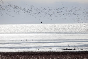 水草淺灘內有野鼠,不僅提供水貂與短尾鼬食物,也是各種度冬猛禽鷹類覓食的天堂。我們將尋找幾種常見老鷹的行蹤,有北方鵟鷹(Harrier)、紅尾鵟(Hawk)、貓頭鷹(Owl)、白頭海鷹(Bald Eagle)等猛禽,在低空尋找獵物。