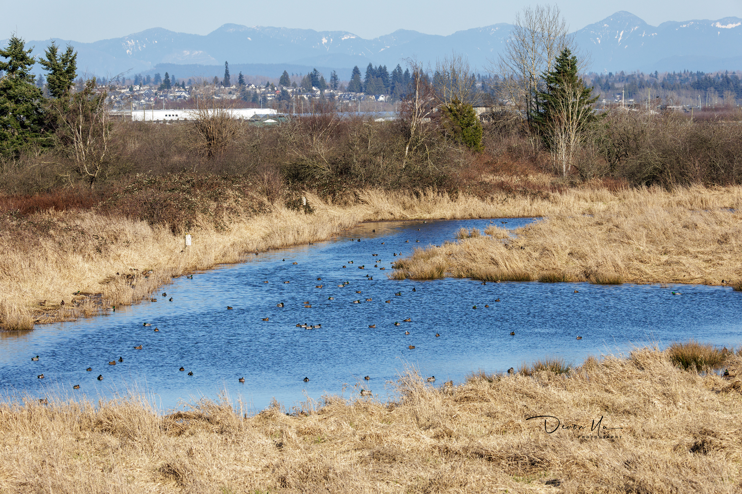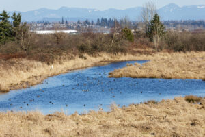 常見的水禽包括綠頭鴨、葡萄胸鴨、赤頸鴨、針尾鴨、綠翅鴨和加拿大雁。此外,該濕地也是猛禽的重要棲息地,如紅尾鵟、灰澤鵟、白頭鷹、雞鷹、魚鷹和游隼。