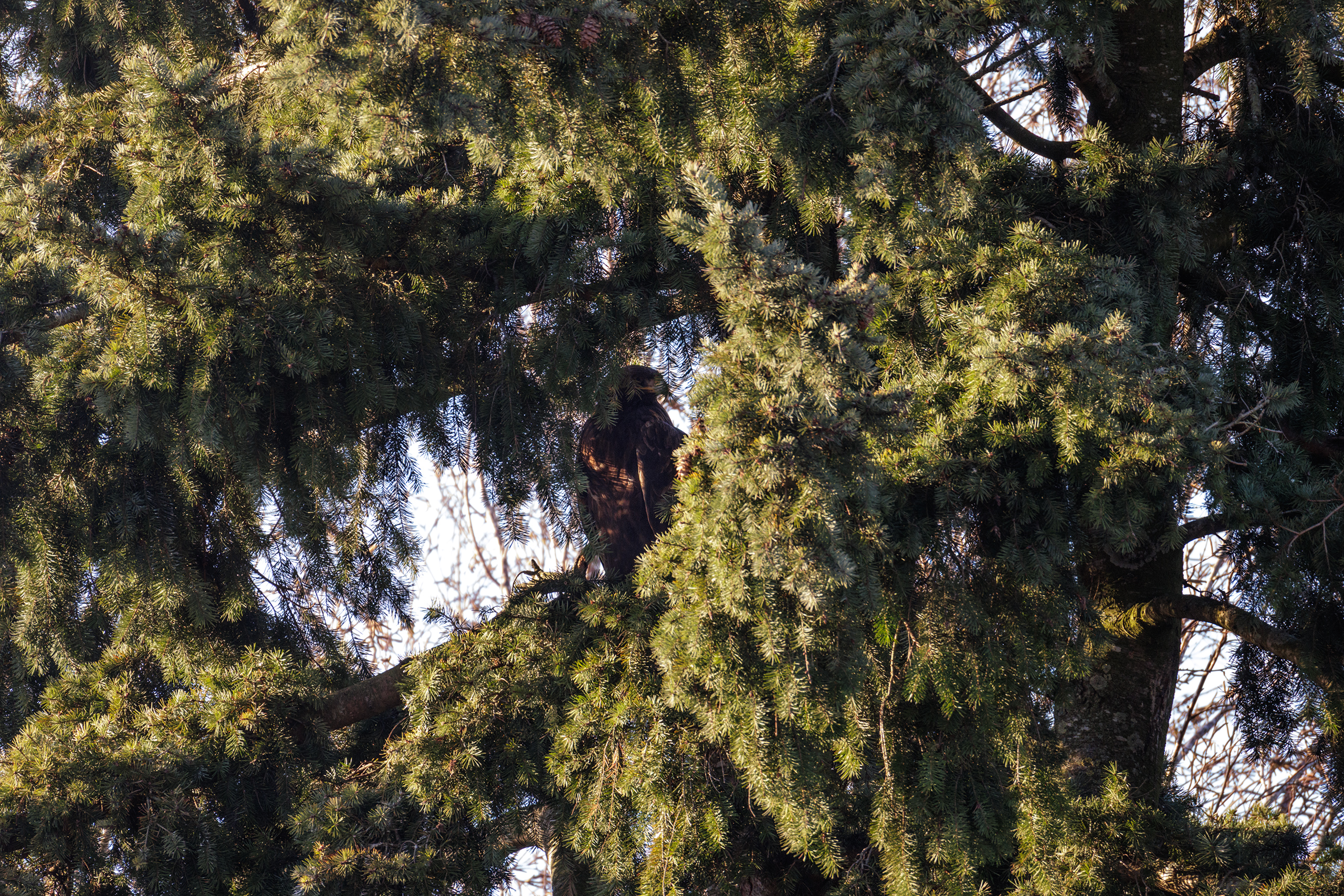 今日鸟况很好,记录了5种猛禽。还有白尾鹞抓蛇。只是金雕一直躲在浓密的松树里不出来。