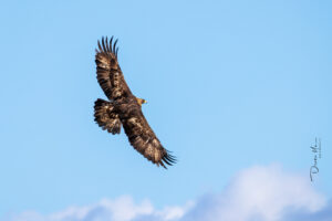 金雕(Golden Eagle),猛禽中的“空中霸主”。 不同于常见的白头海雕,金雕更偏爱山地与开阔地带。它们飞翔时展开的双翼可达2米以上,后颈那一抹闪耀的**“披肩金羽”**是它们最高贵的身份标识。